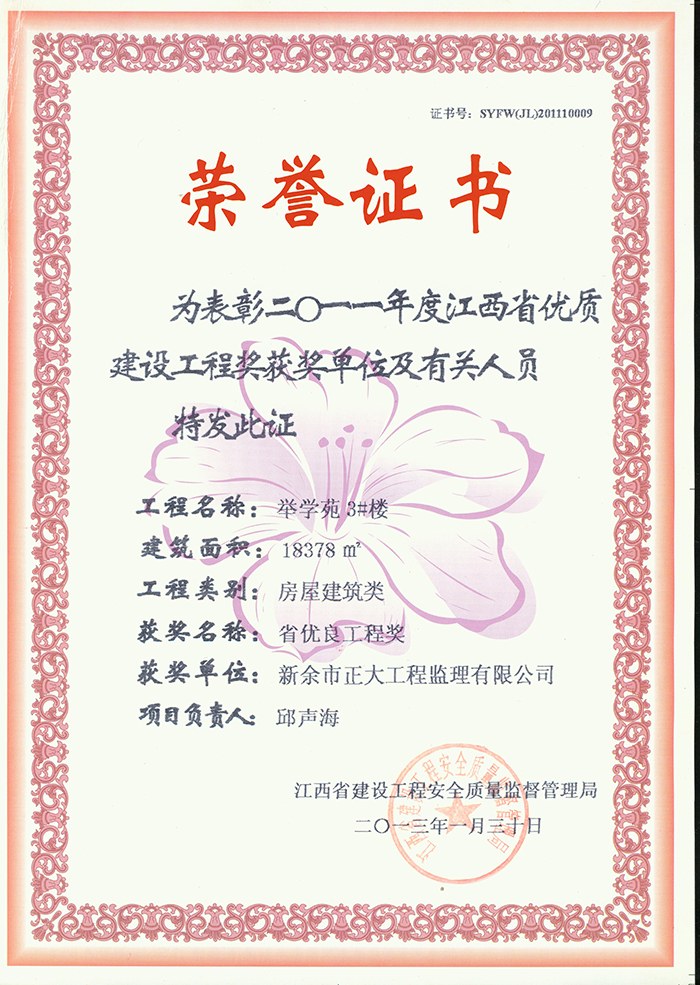 新余市正大工程監(jiān)理有限公司依托新余市建筑設(shè)計(jì)院,于1995年11月成立,是新余市開(kāi)展監(jiān)理工作最早的監(jiān)理單位,本公司具有建設(shè)部核發(fā)的房屋建筑工程甲級(jí)監(jiān)理資質(zhì)、市政公用工程乙級(jí)監(jiān)理資質(zhì)、國(guó)家人防辦核發(fā)的人防工程監(jiān)理乙級(jí)資質(zhì)。我公司始終堅(jiān)持“客戶至上、質(zhì)量第一、信守合同”的經(jīng)營(yíng)理念;追求“為社會(huì)創(chuàng)造價(jià)值、為業(yè)主創(chuàng)造效益、為自身謀求發(fā)展”的經(jīng)營(yíng)宗旨;遵循“守法、誠(chéng)信、公正、科學(xué)、優(yōu)質(zhì)、高效”的工作原則,以雄厚的技術(shù)力量、完善的管理制度、豐富的監(jiān)理經(jīng)驗(yàn)、良好的企業(yè)信譽(yù)迅速成為我市監(jiān)理行業(yè)的一支新銳力量!